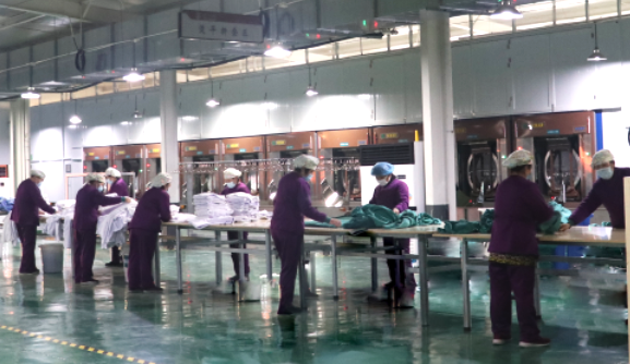 為確保潔凈被服能順利送至各大醫院,國濟尚領啟動應急預案并召開緊急會議,就被服洗滌、物流配送等工作進行安排,各部門積極配合應對。盡管洗滌任務重,時間短,但是所有一線員工發揚團結一心、克服困難、相互協作的精神,加班加點、盡職盡責地完成洗滌工作。