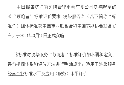 日照國濟尚領參與起草的《“領跑者”標準評價要求 洗染服務》于2021年3月15日正式實施!