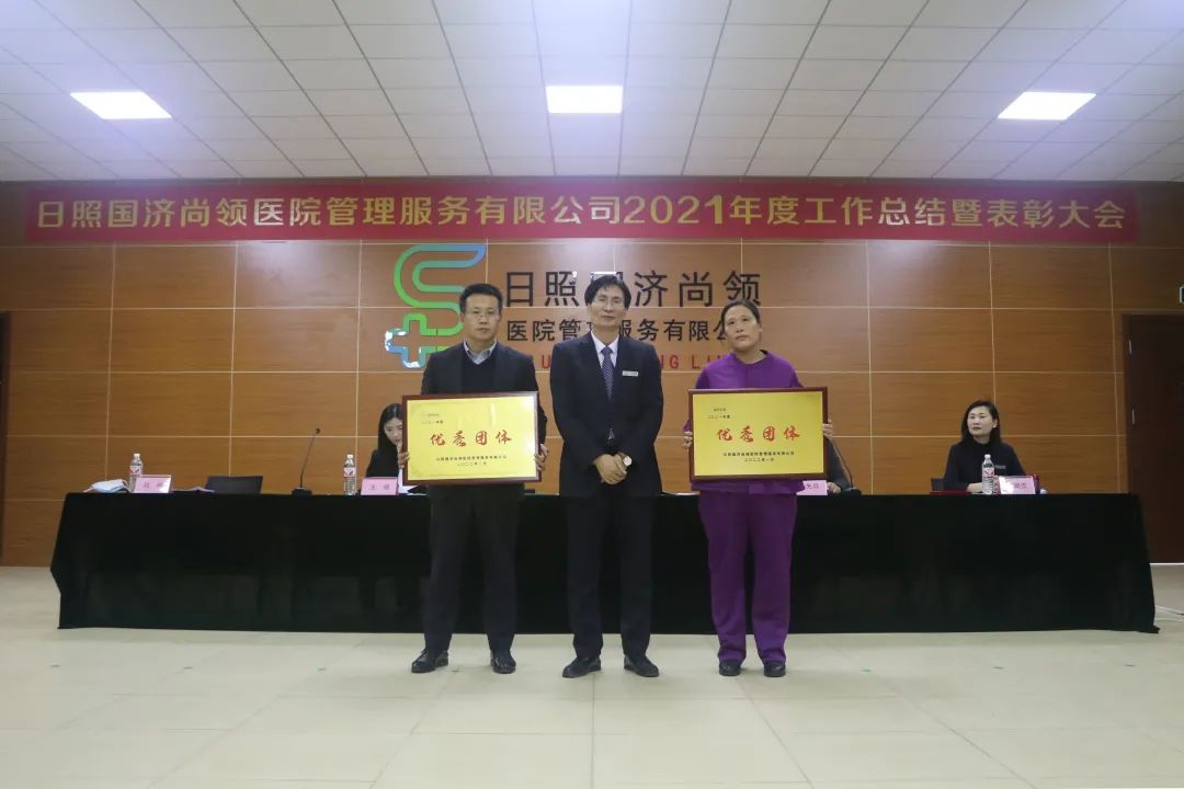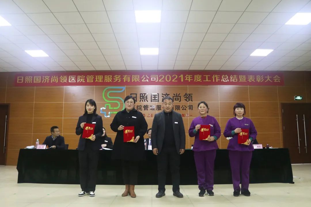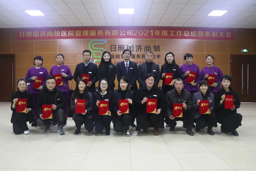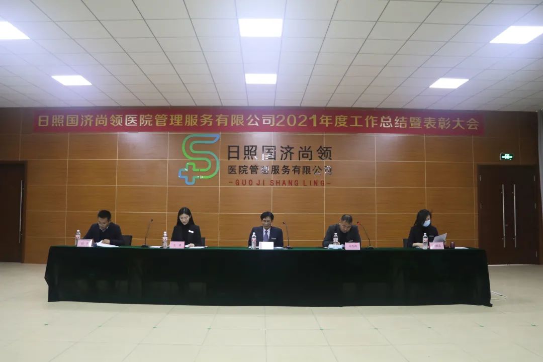 2022年1月22日下午,日照國濟尚領醫院管理服務有限公司召開2021年度年終總結暨表彰大會。國濟尚領董事長馬玉海、常務副總經理馬先兵、副總經理王祺出席會議,各部門負責人及員工代表參加會議。會議由公司常務副總經理馬先兵主持。