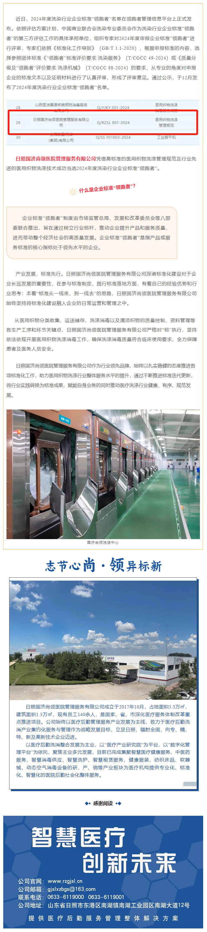 國濟尚領榮獲2024年度洗染行業企業標準“領跑者”