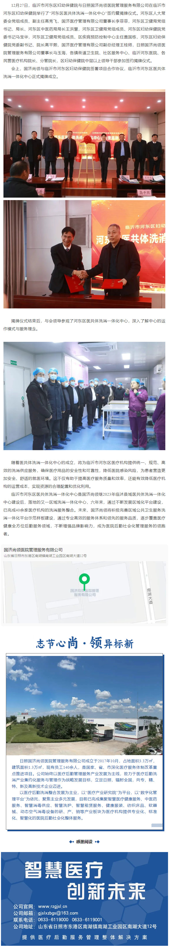 國濟尚領簽約臨沂市河東區婦保院,共建區域醫共體洗消一體化中心!